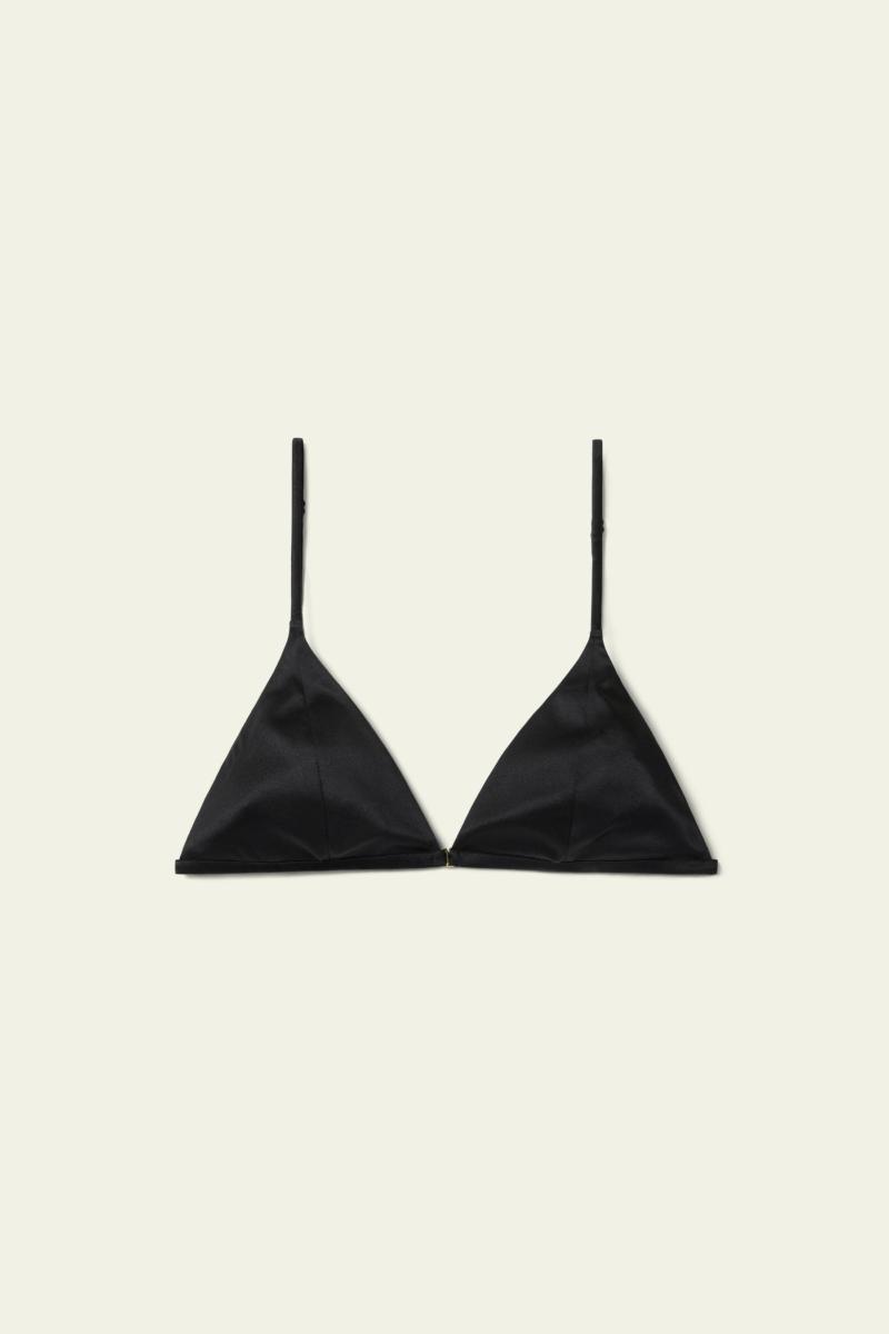 高級感のある艶やかなシルクサテン地と、繊細で上品さのあるレースがお洒落なデザインのブラジャー。