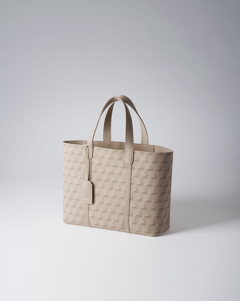 インテリアファブリックの技術を取り入れた、大容量かつ個性あふれるトートバッグ。