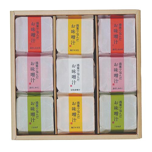 | 内容量 | 計9個 (即席みそ汁3種×2個、即席お吸い物1種×1個、即席スープ1種×2個) |