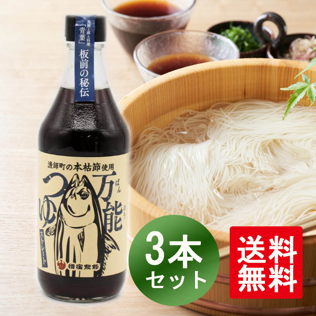 | 指宿鰹節 「万能つゆ」 | 2,860円 | 添加 | かつおだし | ストレートタイプ | 豊かなかつおの風味 | 麺料理、肉じゃがや親子丼の味付けに | ・最高級のかつお節「本枯節」使用 ストレートタイプの万能つゆ | |