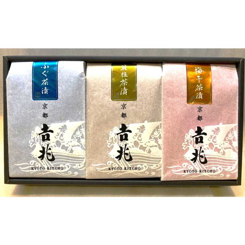 | セット内容 | 茶漬計5食 (紅鮭 、 昆布 、ちりめん山椒 、ふぐ 、梅干 )×各1 吸い物計4食(九条ねぎ・湯葉 、壬生菜・ふぐ、聖護院かぶら・壬生菜、白みそ、賀茂茄子・万願寺唐辛子、赤みそ )×各1 |