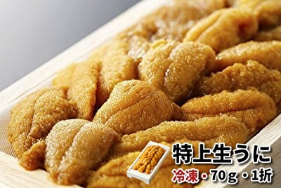 北海道の海で育ったウニを、旬の時期に水揚げ後すぐ急速冷凍した、北海道網走水産「特上生うに」です。