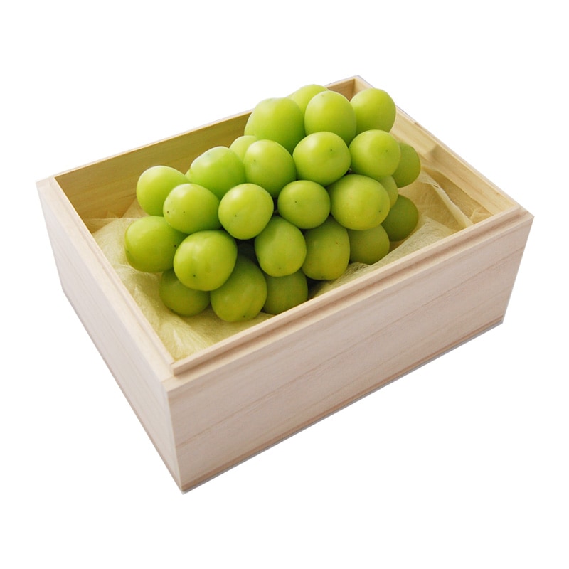 「安芸津21号」と「白南」の掛け合わせから誕生した高級シャインマスカット。厳選された旬の房だけを使用し、1房ずつ桐箱に収めた特別仕様です。