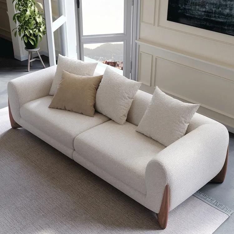 MUTUKIの「無垢材アッシュとシープボアを使用したラグジュアリーソファー」は、無垢のアッシュ材フレームとシープボア生地を組み合わせた上質なソファです。