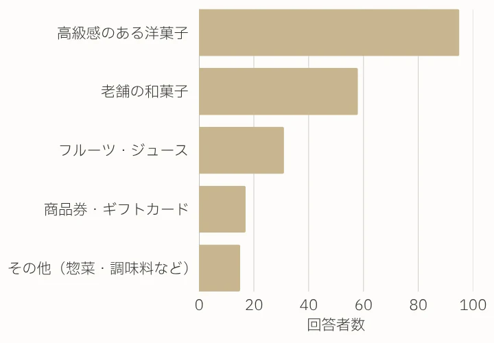 - 「ありきたりかもしれないけれど、ゴディバのチョコレートはやはり嬉しいです。誰でも知っているブランドの安心感と高級感が、素直に『申し訳ない』という気持ちの表れだと感じられます。」(20代/女性)