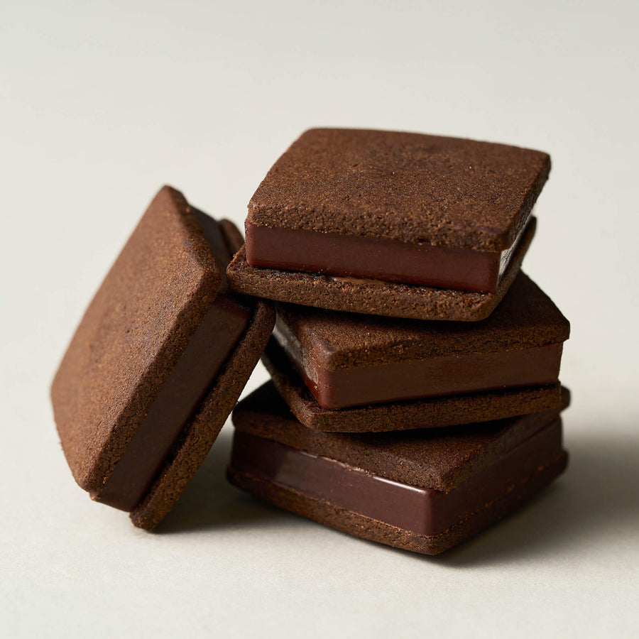 「チョコレートサンドクッキー4種(8粒入)」は、香り豊かなチョコレートをほろ苦いビタークッキーでサンドした贅沢なお菓子です。