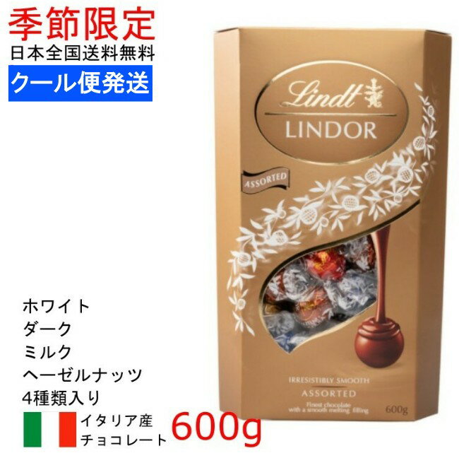 このギフトには、Lindt(リンツ)のダークチョコレート・ヘーゼルナッツチョコレート・ホワイトチョコレート・ミルクチョコレートの4種類がたっぷりとつまっています。