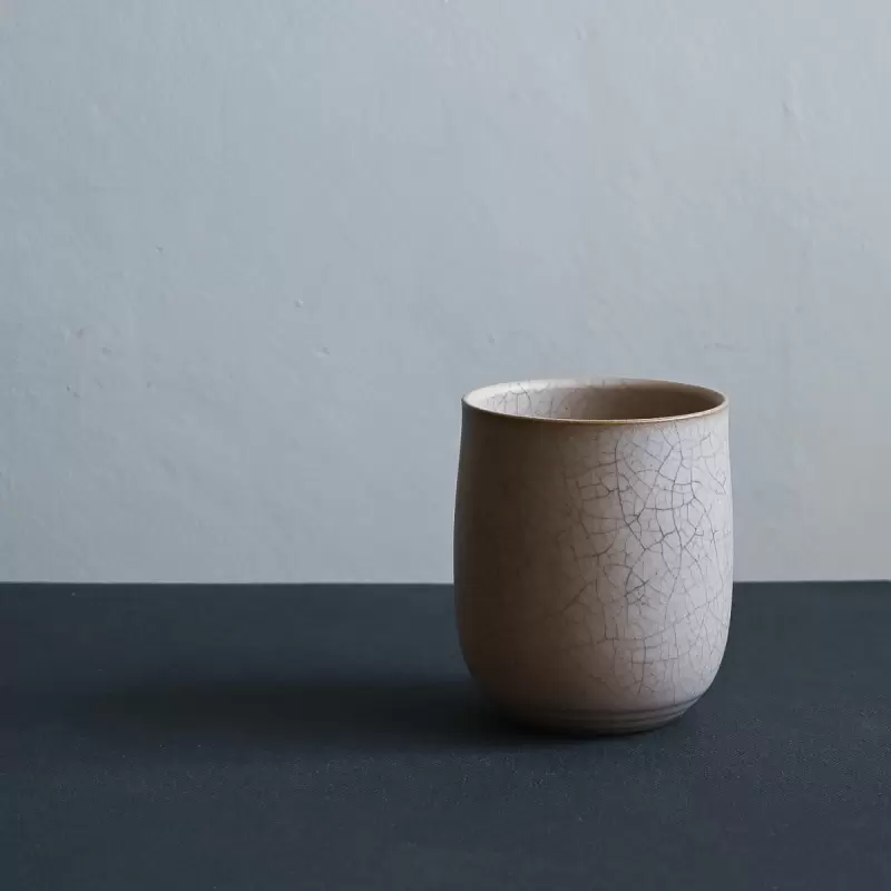やや丸みを帯びたフォルムは手にしっくりとなじみ、お茶やコーヒーなど、日々のさまざまなシーンに寄り添う万能なカップです。