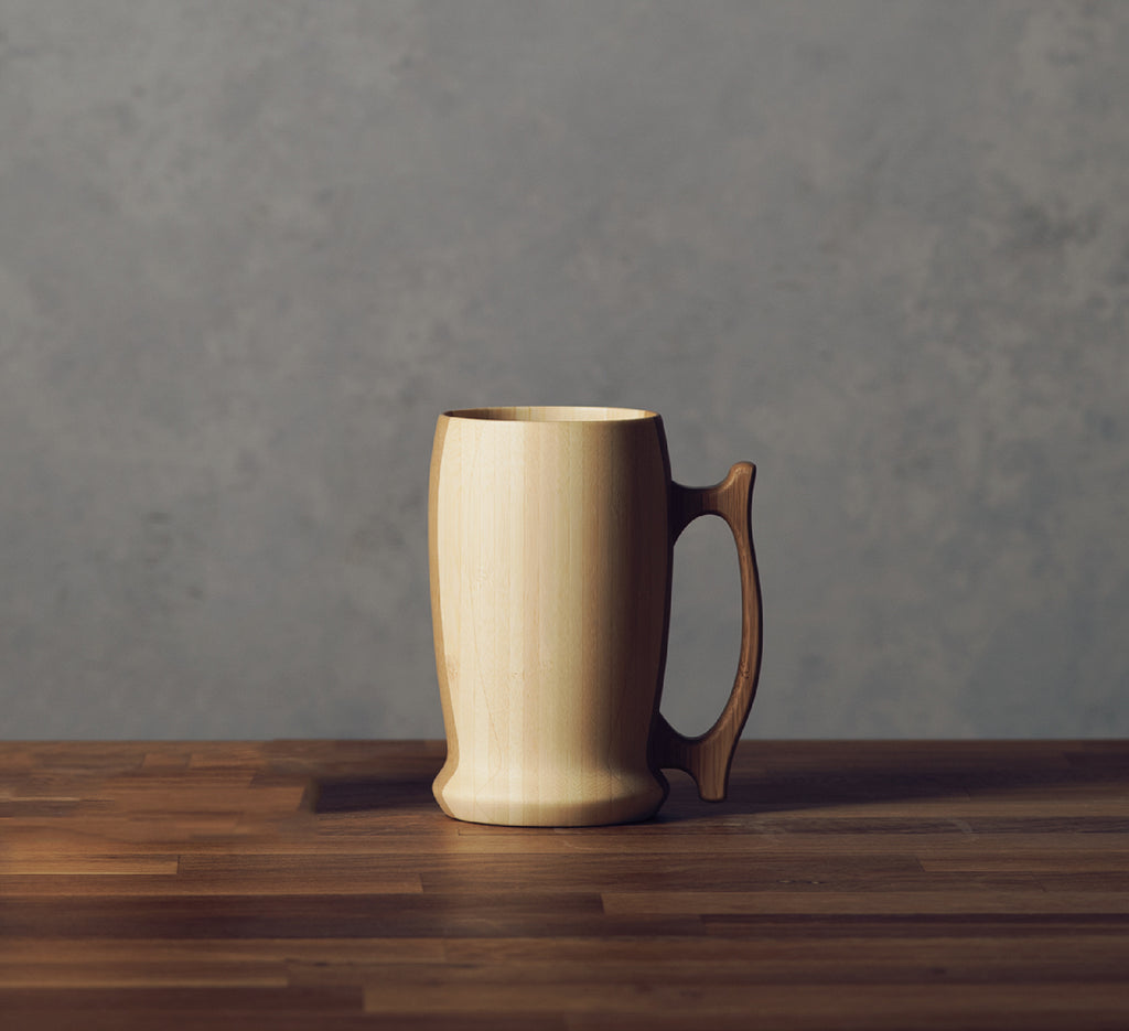 RIVERETの「ビアマグ」は、ダイナミックなシルエットと上品なデザインが魅力の竹製ビアジョッキです。