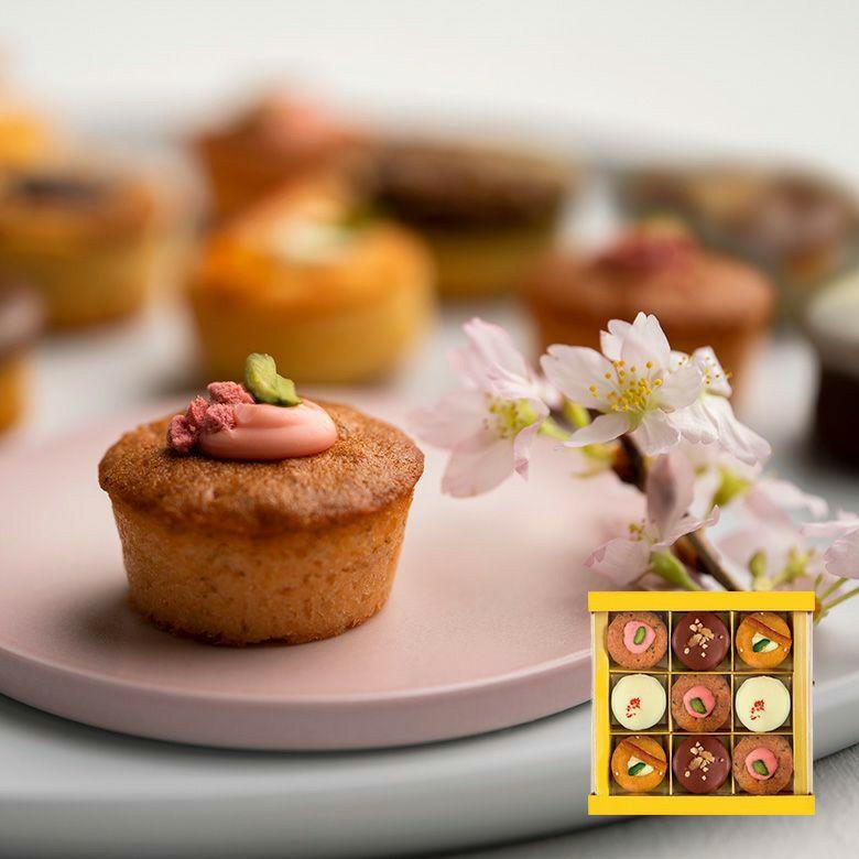 生地に桜葉を練り込み、香ばしく焼き上げたプチケーキは、ひと口でふわりと桜の風味が広がります。色とりどりの4種を詰め合わせたアソートで、少しずつ味わえるのも魅力です。