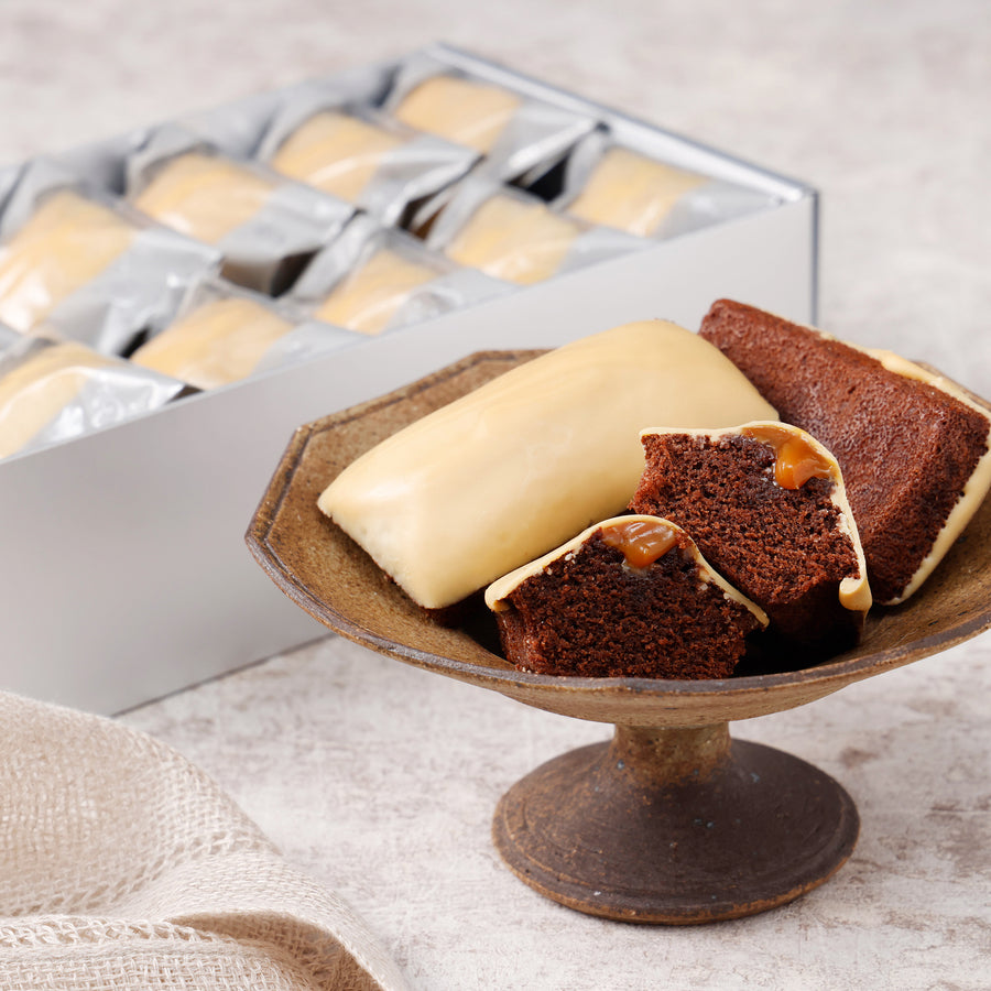 中に忍ばせた塩キャラメルが甘さを引き締めるため、奥行きのある味わいが楽しめます。特選受賞の実績を持つ、上質な手土産として人気です。
