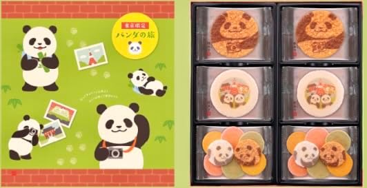 桂新堂は名古屋発祥の老舗ですが、「パンダの旅」は東京の名所を巡るパンダがモチーフ。カメラを持っているパンダや浅草見物をしているパンダが描かれたえびせんが、さまざまなテイストでセットになっています。