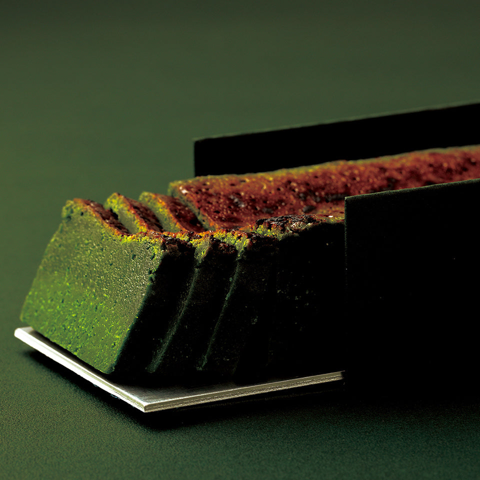 1時間にわずか40gしか挽けない高品質の一番摘茶と、フランス産の最高級クーベルチュールチョコレートを使用した祇園辻利の「抹茶テリーヌプレミアム」。