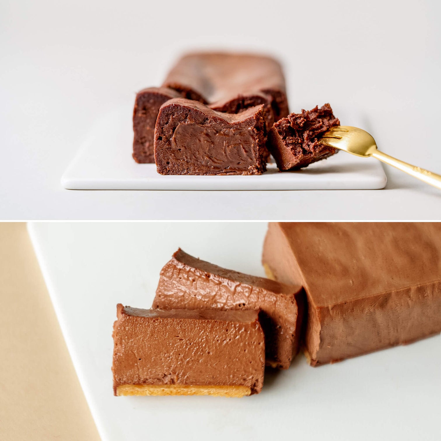 Minimalの代表作「生ガトーショコラ -PRIME-」と、「チョコレートレアチーズケーキ」を一度に楽しめる「Minimal定番スイーツセット」。